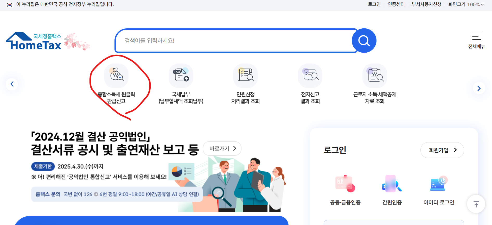 국세청이 ‘원클릭 종합소득세 환급서비스’를 통해 5년 치 환급금을 한 번에 받을 수 있는 시스템을 도입했습니다.