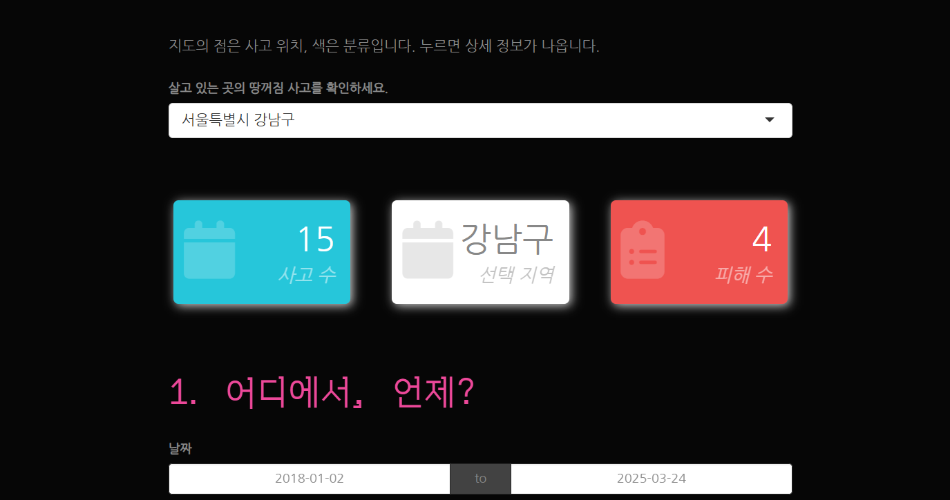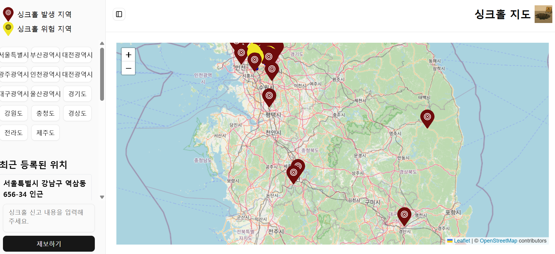 2. 자신의 주소를 입력하여 주변 싱크홀 발생 정보를 확인