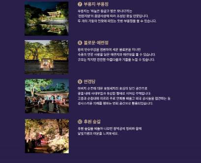 조명 없이 어둠과 달빛으로 느끼는 고궁의 분위기는 오직 이 기행에서만 가능한 특별한 경험입니다.