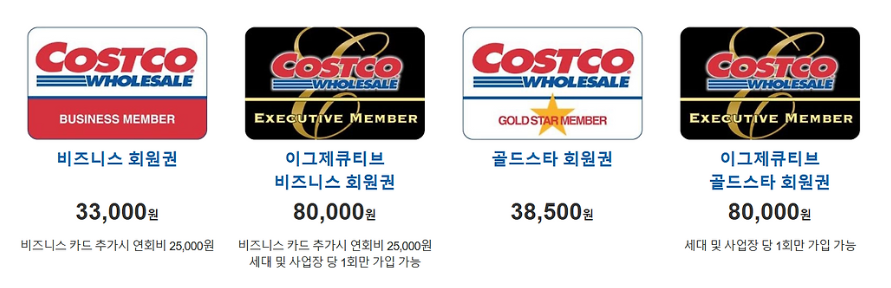 코스트코 회원권은 크게 골드스타, 비즈니스, 이그제큐티브로 나뉘며, 각각의 연회비가 2025년 5월부터 인상됩니다.