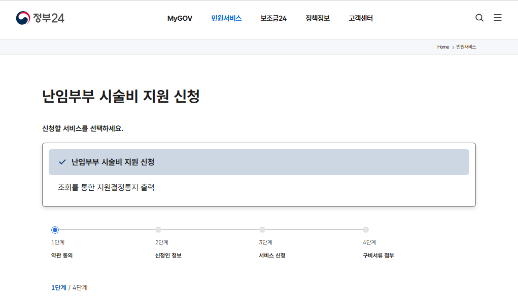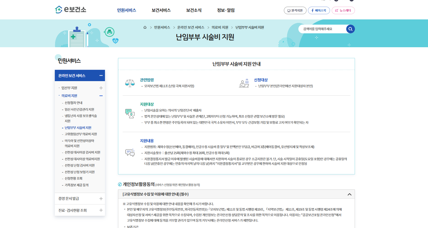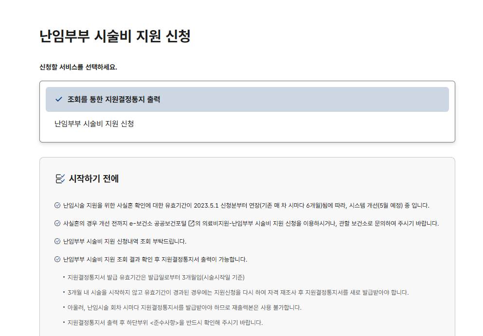 시술을 시작했다면 보건소에 신청 후 정부24에서 지원결정통지서를 출력해 병원에 제출해야 합니다.